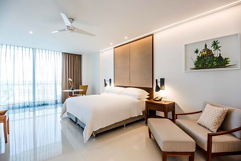 Cartagena’s beachfront sanctuary blends palm-fringed vistas with a private pool and spa/wellness packages, all set among terraces and garden views. Dining on site includes Portofino (Italian), Oceana (Seafood), and World Cafe (International), each with a family-friendly ambiance for sunset dinners or breezy lunches between adventures.